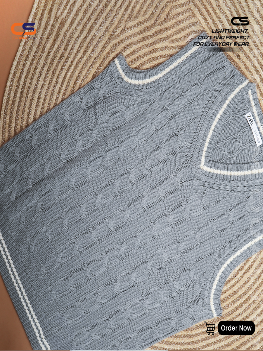 Stay warm and stylish this winter with our Soft Cable Knit Vest Sweater. Its premium Acrylic–Cotton blend ensures durability and gentle comfort, making it the perfect layering piece for any outfit—casual or smart.